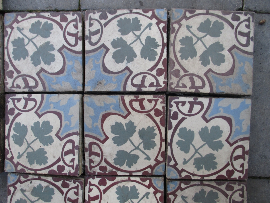 Art-Nouveau keramische vloertegels met mozaik motief, afkomstig uit Bergen