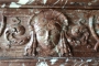 Victoriaanse eind 19e-eeuwse zuilenschouw in "rouge royale" marmer, versierd met massieve pilaren en rijkelijk uitgewerkt met sculpturen.