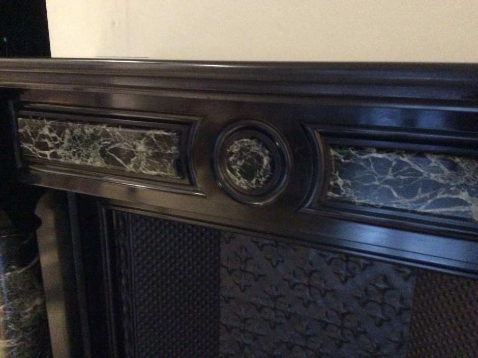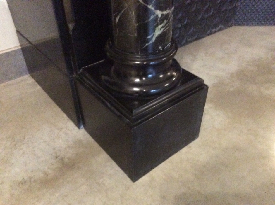 19e-eeuwse Victoriaanse zuilen schouw in diepzwarte marmer versierd met groene "Vert de Mer" marmeren zuilen.